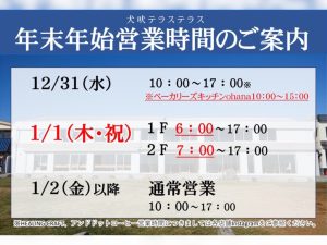 年末年始営業時間&1FSeasideTerraceモーニングセット販売休止期間について